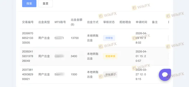 لقد فتحت حسابًا وتاجرت على منصة MasterMind Capitals حساب MT5: 52**** الخادم: MasterMindCapitals-Server إجمالي الإيداعات: حوالي 7000 دولار أمريكي مبلغ السحب المطلوب: 13700 دولار أمريكي لقد نجحت في سحب 1500 دولار أمريكي في المرة الأولى. عندما تقدمت بطلب سحب 3400 دولار أمريكي في المرة الثانية، رفضت المنصة مراجعة الطلب بحجة "شذوذ في بطاقة البنك\". ثم تقدمت مرة أخرى بطلب سحب 13700 دولار أمريكي، وظلت المنصة تماطل لأسباب مثل \"العطلات الرسمية\" و\"شذوذ في بطاقة البنك"، ولم تتم معالجة الطلب حتى الآن. قام خدمة العملاء بالتسويف مرارًا وتكرارًا، ولم يتم البت في طلب سحبي للأموال حتى الآن.