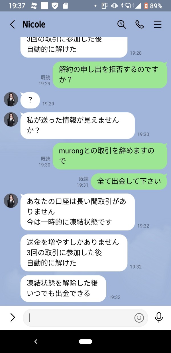 解約ができません。凍結状態を解除するのに送金をしなければならない。前回の取引は11/24から1カ月も経過していないのに凍結されています。これ以上送金したくありません。解約したいので解決をお願いします
