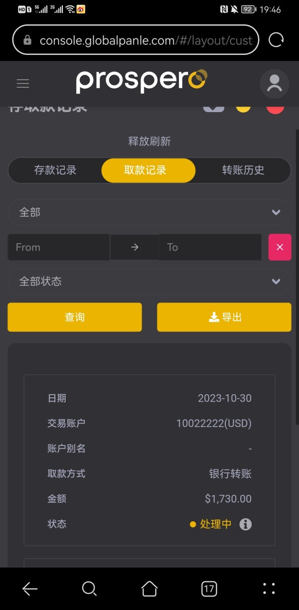 10月30号提取的资金一直没反应