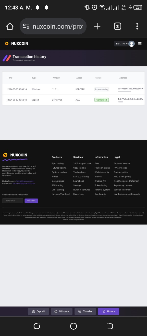 تم إيداعي في هذه المنصة في أسرع وقت ممكن ولكن عندما حاولت سحبها، مرت أكثر من يومين ولم تصل، الحد الأقصى للوقت المطلوب هو 5 دقائق. احتيال تام... يقول أنه في عملية ولكن لا توجد تقدم إضافي!!