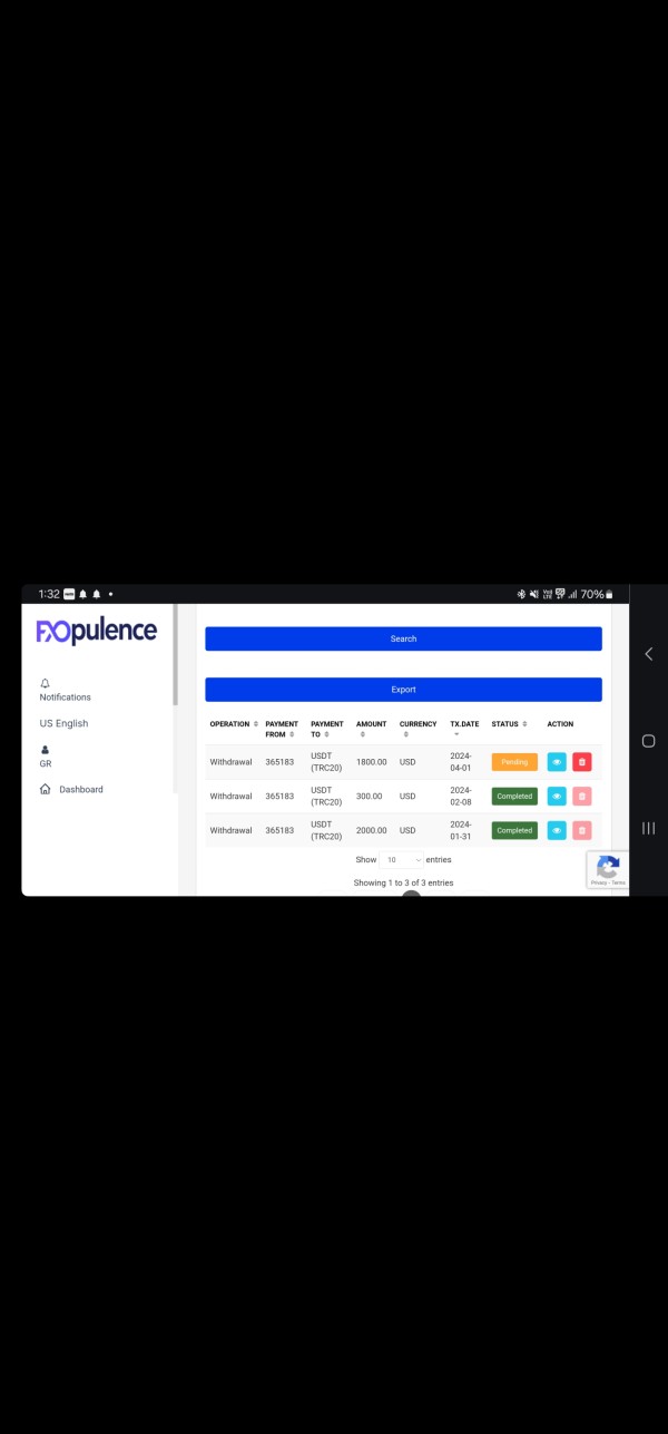 I have invested 1192140 INR ie [13246 USDT] i have send multiple time withdrawal request but this broker can't accept withdrawal request .this broker send me mail usdt not withdrwal due to cyber attack .this fxopulence broker does not gave me money