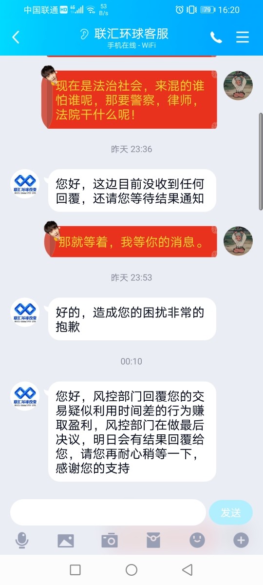 我在这个平台里操作资金达到46万多,他们先是不让出金,告诉我说交易异常要风险审核,让我等待,现在直接把我账户资金清零了,说我的交易盈利是不法所得。我现已报案,各位交易者,请你们看清这丑恶的嘴脸。骗子诈骗