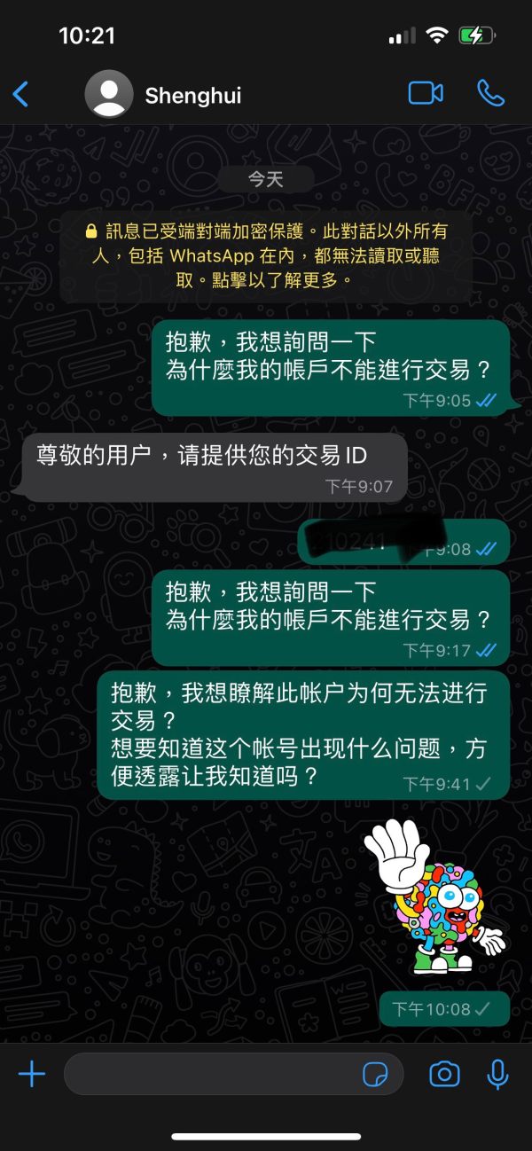我前陣子要出金,結果平台告知要繳活動滯納金(如期繳完),又被告知因為有多筆第三方匯款,依洗錢防制條例必須繳錢2%所得稅(如期繳款)。 在詢問關於是否可出金了?(客服人員就都不讀不回),所以透過軟體發現我被客服封鎖?!同時我也發現我無法進行交易,現在這個狀況等於無解了。 不知道能透過什麼方式得到答案?!