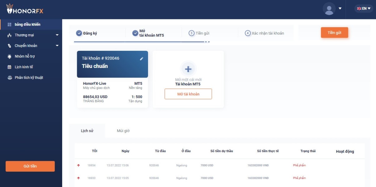 Cảnh báo sàn #honorFX chuyên lừa đảo, không cho rút tiền và khóa tài khoản của khách hàng hàng Tài khoản MT5 của tôi là 920046, tôi đã tham gia từ 2/6/2022. Khi có lời bên sàn cho rút một vài lần để làm lòng tin cho các nhà đầu tư. Tuy nhiên sau đó tôi có rút tiền 5000 USD và lệnh vẫn được duyệt, ban đầu vẫn được trừ vào tài khoản giao dịch, tuy nhiên sau đó trong khoảng vài giờ, tiền sẽ không về tài khoản cá nhân mà được cộng lại vào tài khoản giao dịch, hành động này cứ lập đị lặp lại từ thứ 6 tuần trước – ngày 08/07/2022 đến nay (Tức là tôi cứ rút tiền thì ban đầu trừ tiền vào tài khoản giao dịch, nhưng sau đó số tiền đó lại được cộng vào tài khoản). Khi liên hệ với bộ phận chăm sóc khách hàng của sàn có đầu số tại Việt Nam là 1900292920 thì được giải thích là thông tin cá nhân của ngân hàng có sự sai sót, giải thích của bộ phậm chăm sóc khách không thực sự thuyết phục vì tôi đã rút vài lần thành công rồi. Hiện này số tiền mà Sàn honorFX chiếm đoạt của tôi là 88654 USD Sau nhiều lần viết thư vào bộ phậm hỗ trợ cửa sàn support@honorfx.com và support.vietnam@honorfx.com nhưng không nhân được hồi âm thì đến chiều ngày 13/07/2020 Tài khoản của tôi đã bị khóa (Không thể truy cập được nữa) Tôi đăng bài nên trang này yêu cầu Sàn honorfx trả lại tiền cho tôi. Và tiện đây các nhà đầu tư đang tham gia nên cận trọng với sàn này và các nhà đầu tư mới thì nên tránh xa sàn Honorfx này kẻo mất tiền oan dẫn khuynh gia bại sản.
