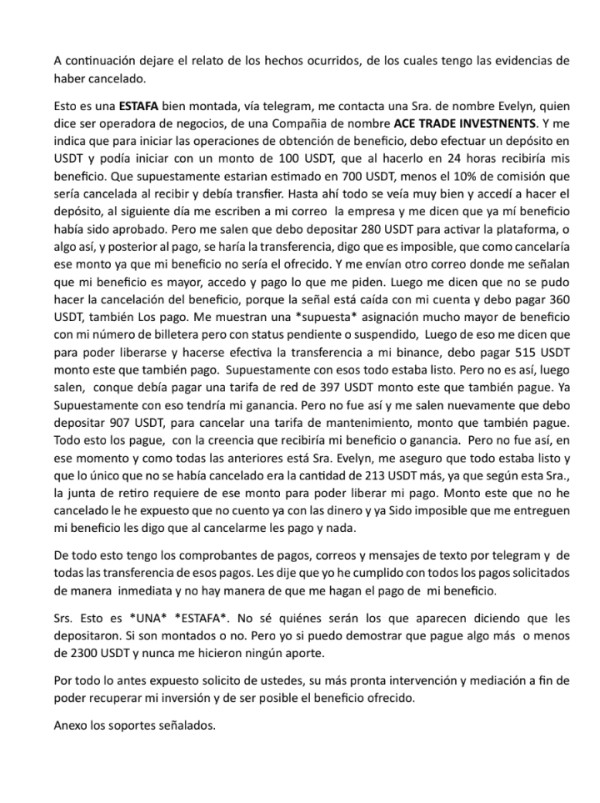 en el cuadro anexo se encuentra agregado es escrito de denuncia. por falta de pago de beneficios y estafa