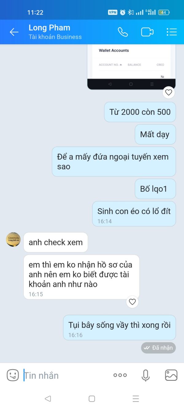 có tên trên zalo thì đừng vào nhóm có tên Phân tích chiến lược đầu tư do Long Phạm cầm đầu. có.hành vi không cho rút tiền , và có hàng vi đổi mật khẩu trên mt5, sau đó làm cháy tài khoản để chiếm đoạt. đính kèm hình ảnh tên này trên zalo (có thể là hình giả, nhưng ai thấy ảnh này chạy đi, nạp vào là mất trắng)