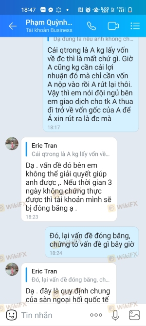 لقد استثمرت من 9 إلى 2022 بإجمالي 58000 دولار والربح الآن لا يسمحون لي بالانسحاب وهم يهددونني حتى 19/11 سيحذفون حسابي على MT4 وحساب السحب الخاص بي. السلطات الدولية والفيتنامية. الرجاء مساعدتي