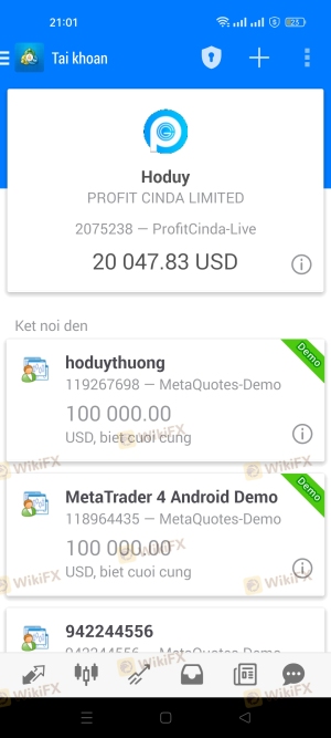 مرحبًا ، لا يمكنني الدفع نقدًا على الأرض PROFIT CINDA LIMITED . يقولون إن هامش الصور المصغرة الخاصة بهم يجب أن يدفع المال لإثبات الحساب بعد 3 أيام ، سيكون باردًا ، لذلك سيكون ثقلًا نقديًا إذا دفعت المزيد من المال ، يرجى إعطائه مبلغًا إضافيًا من الكحول ، يرجى إعطائه فكرة.