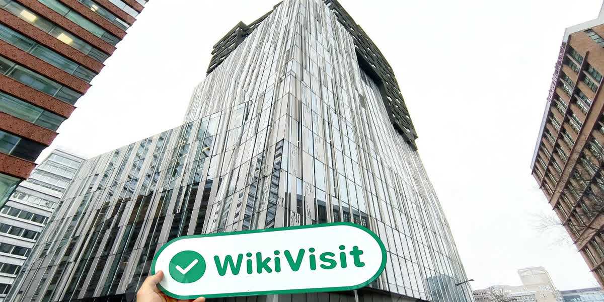 وصل المفتش الميداني بنجاح إلى المبنى المستهدف، الذي يقع في المنطقة المالية في أمستردام. المنطقة المحيطة صاخبة بجو تجاري قوي. يمكن رؤية شعار الشركة على الواجهة الخارجية للمبنى.