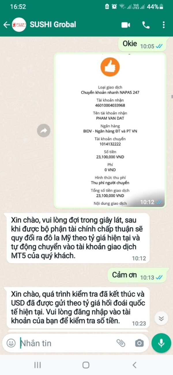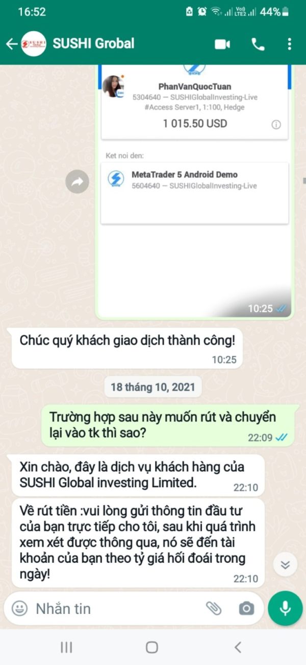 Sàn SuShi lừa đảo không rút tiền và xóa tài khoản còn ham dọa
