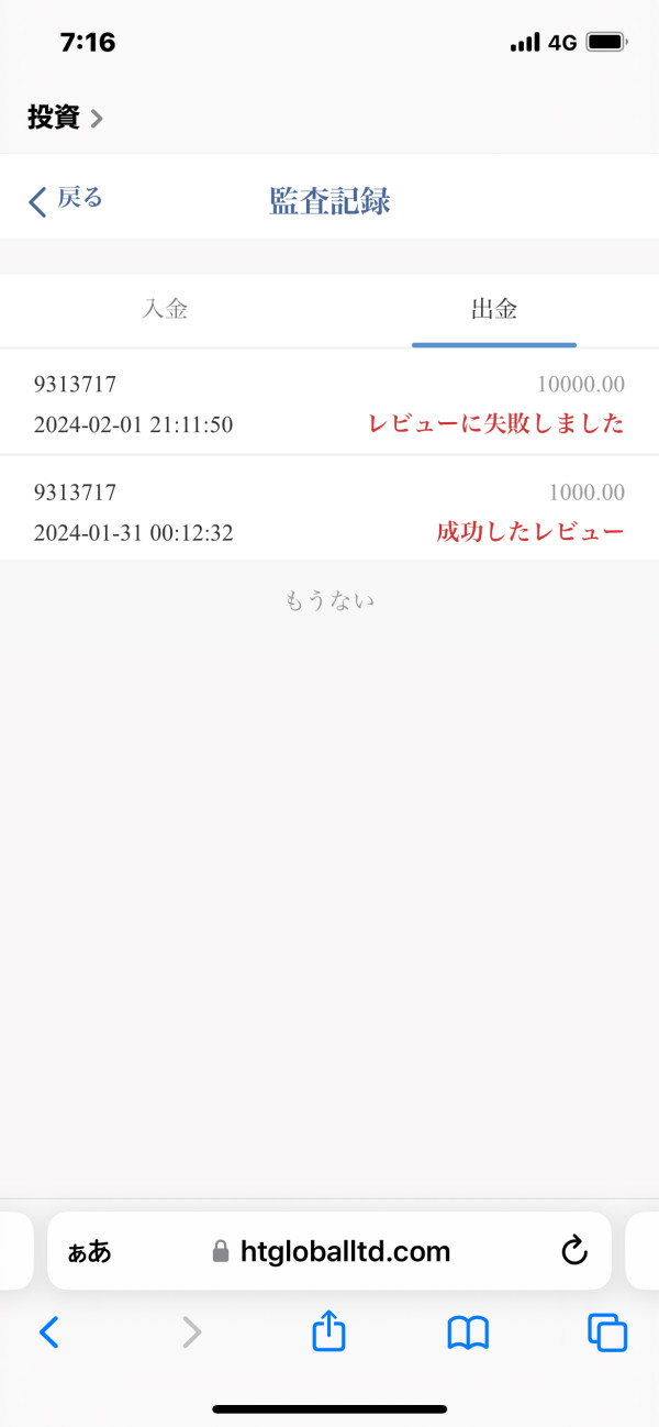 出金手続きをすると24時間以内に出金可能と聞いていたのですが、24時間以上経っても音沙汰なく、原油の自動購入が開始され、レビューに失敗したと表示された出勤出来ず。再度チャレンジしたところ今度は取引中のため、出金不可と表示された。最低限投資した分だけでも出金したいです。