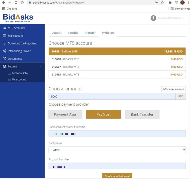 BidAsks Chiếm Đoạt tài sản của nhà đầu tư
