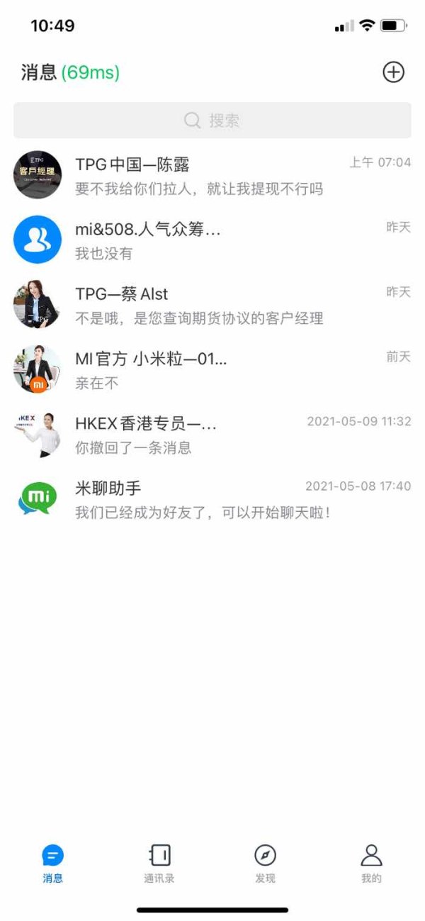 关于HKEX香港结算交易所的骗局 本人于2021年5月11日下午至2021年5月12日上午在一款叫做 “米聊APP“ 上被一家HKEX香港交易结算所诱骗金额大概50000元左右 5月11日下午我们在 “米聊APP” 上面一个群叫做“ 人气众筹补贴频道”,这个群里诱骗引导每天都会叫我们做任务领取福利,在5月11日的下午他们在群里发送了一个任务;让我们加一个好友账号是 “mi0112" 这个人的昵称叫做 ”官方客服小米粒“ 加完之后让我们在这个软件上找到 ”HKEX香港交易结算所“ 帮他用手机号注册一下,邀请码是7418.,注册完我qq邮箱里收到我注册了盈利智投APP然后按照他的指示买小米集团的期货,每一场的购买分为三期,我注册完账号按照他的指令去操作,然后账号显示了进账38元,可以正常提现,之后群里又开始发送了第二个任务,让我们期货认购,从100元---5000元不等,我向导师认购了200元,导师让我去咨询客服,于是客服TPG中国-陈露没有让我对公充值。而是给了我一个卡号,并且说明不支持支付宝和微信只能手机银行转账