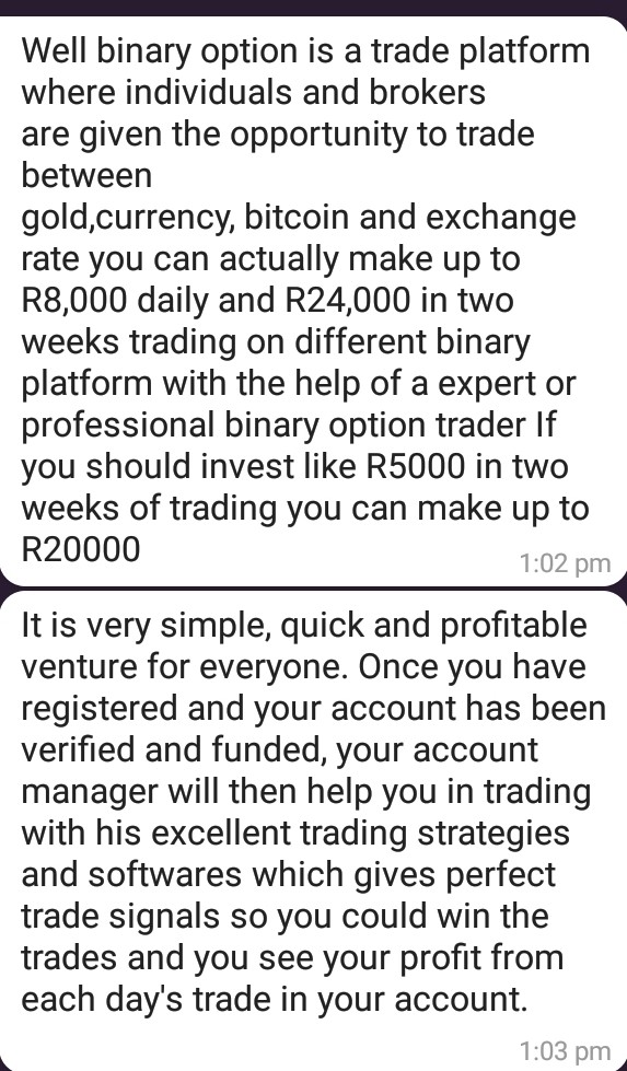 She told me to invest 1500 and get 3000 within 3 days I did all that and after 3 days i received an email from wavefxtrade.com informing me that the trade was successful and i made a profit of 15000USD ,they then asked me to give out my banking details and ofcourse i did And then after that they told me that i had to pay a brokerage fee Upfront and this is something that Sadiki never told me wavefxtrade.com both made me believe that after paying the brokerage fee I would get my profit. R16000