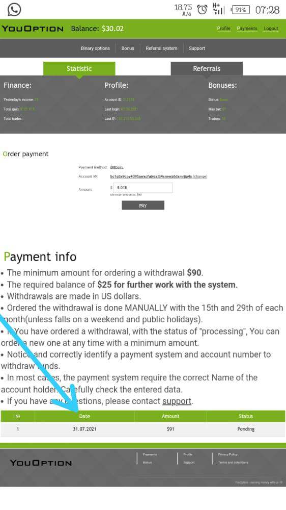 I have been using the you option website since the month of April, in which I was able to accumulate the minimum withdrawal balance of 115$, with I decided to withdraw 90$ on 31st of July this year. Even till now the payment hasn't been received and the site keeps writing pending. Tried contacting the customer care service but its non responsive