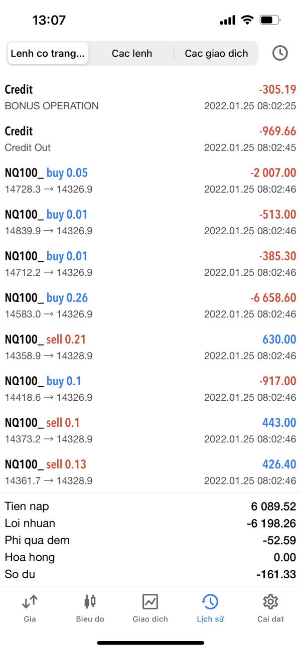 Mình mới vào thị trường Forex, vừa bị mất 6.000 USD do kỹ thuật sàn đi lệnh giúp mình và bắt gồng để nạp thêm tiền, cuối cùng rút Bonus để tài khoản mình cháy. Hơn nữa, Sàn giá Spread và phí qua đêm rất cao. . Mọi người tránh xa sàn này nhé.