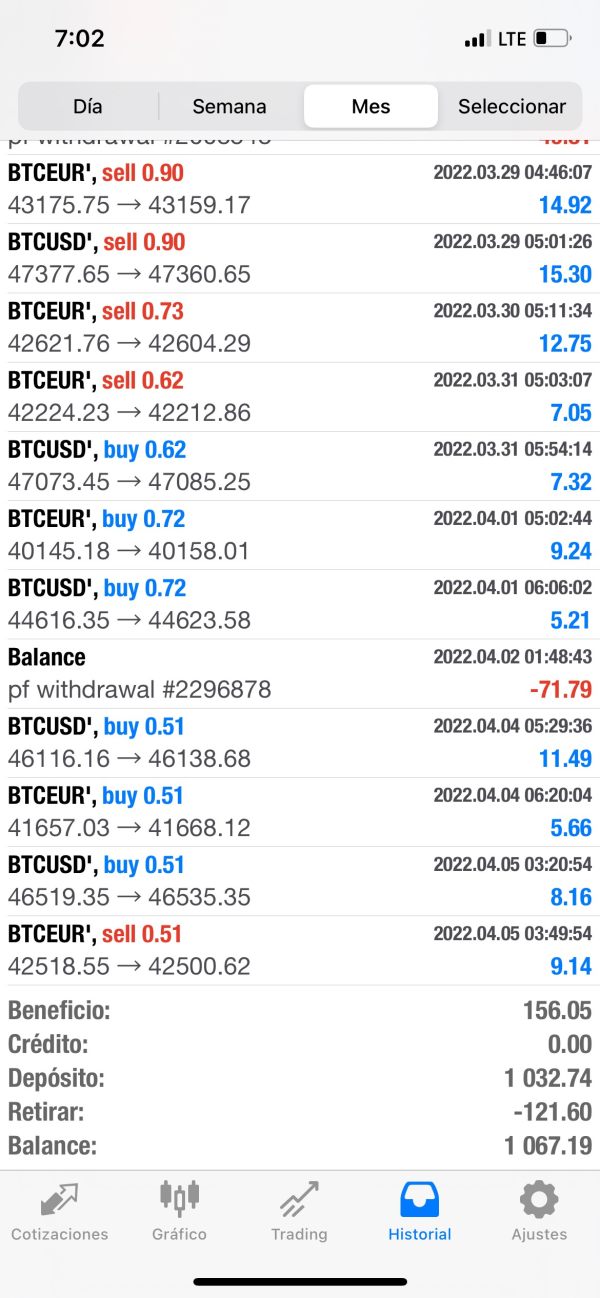 Se fondeó el broker y se adquirió el genius bot, lo cual la primera semana (14/03-20/03) dio resultados y se vieron reflejados en la billetera azul, pero a partir de ahí cada semana se ven los retiros del mt4 pero no llega nada a la billetera de ipcapital haciendo imposible el retiro de ganancias y capital.