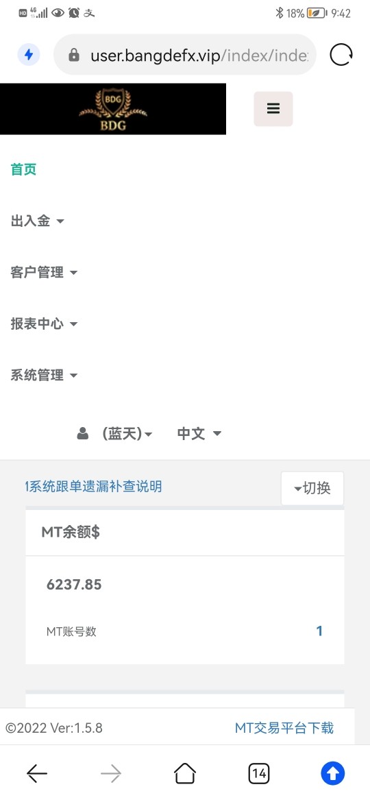 BDG邦德不靠谱,黑平台,出金难,一直不给出金,霸王条款,很多客户和我一样都是不出金。
