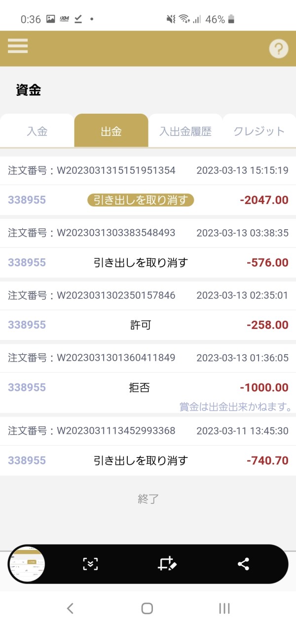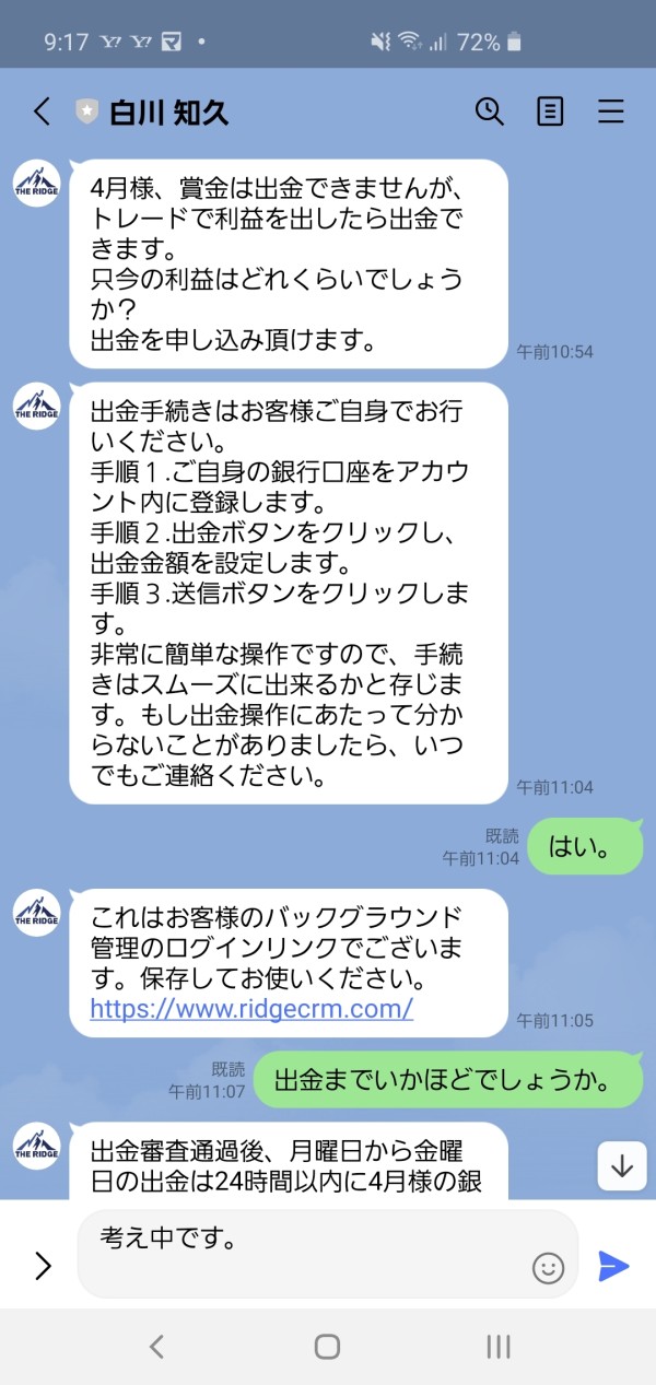 現状私の口座にある2000ドルが出金できない状態です。 出金申請をしても一向にされる気配がなくまた、LINEでも出金は不可能だと言われました。