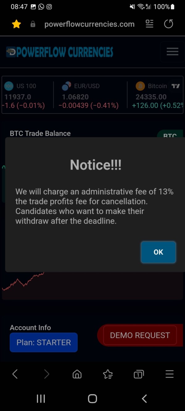 It is not possible to withdraw money, they ask for 10% or 13% of the total profit on the platform. My experience is that of having deposited €400 and after €2600, arriving with the account thanks to automatic trading at 300k, at which point they ask for 10% or 13% and force you to withdraw all the capital in such a way that pay as much money as possible. Stay away.
