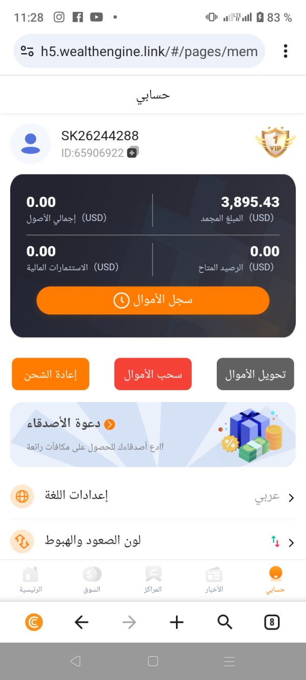 هذا الوسيط الذي يحمل اسم wealth engine والذي كان سابقا يحمل اسم globtfx انه محتال بامتياز جمد حسابي ولا أستطيع السحب اريد تعويض عن حسابي المجمد