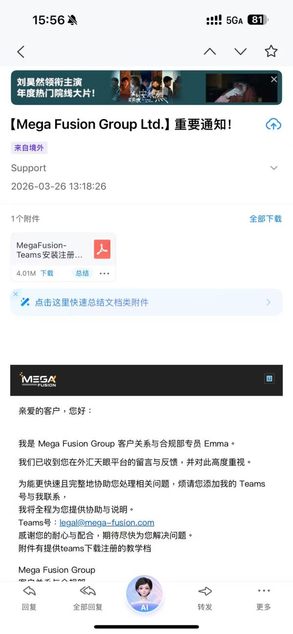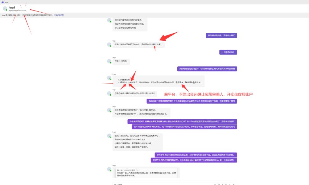 MEGA安汇恶意卡金1945美金,不出金还诱导拉人头赚返佣 本人在MEGA安汇交易,前两单亏损自行承担,后三单正常盈利。 平台不经本人同意、无任何通知,直接后台操作将账户资金强行划扣转走,账户交易记录显示是"出金",赤裸裸侵吞用户资产。 证据齐全:交易订单、盈亏记录、平台强制划扣资金记录、聊天记录全部保留。 郑重提醒:MEGA安汇无法无天、无底线,盈利直接盗划账户,远离避坑!