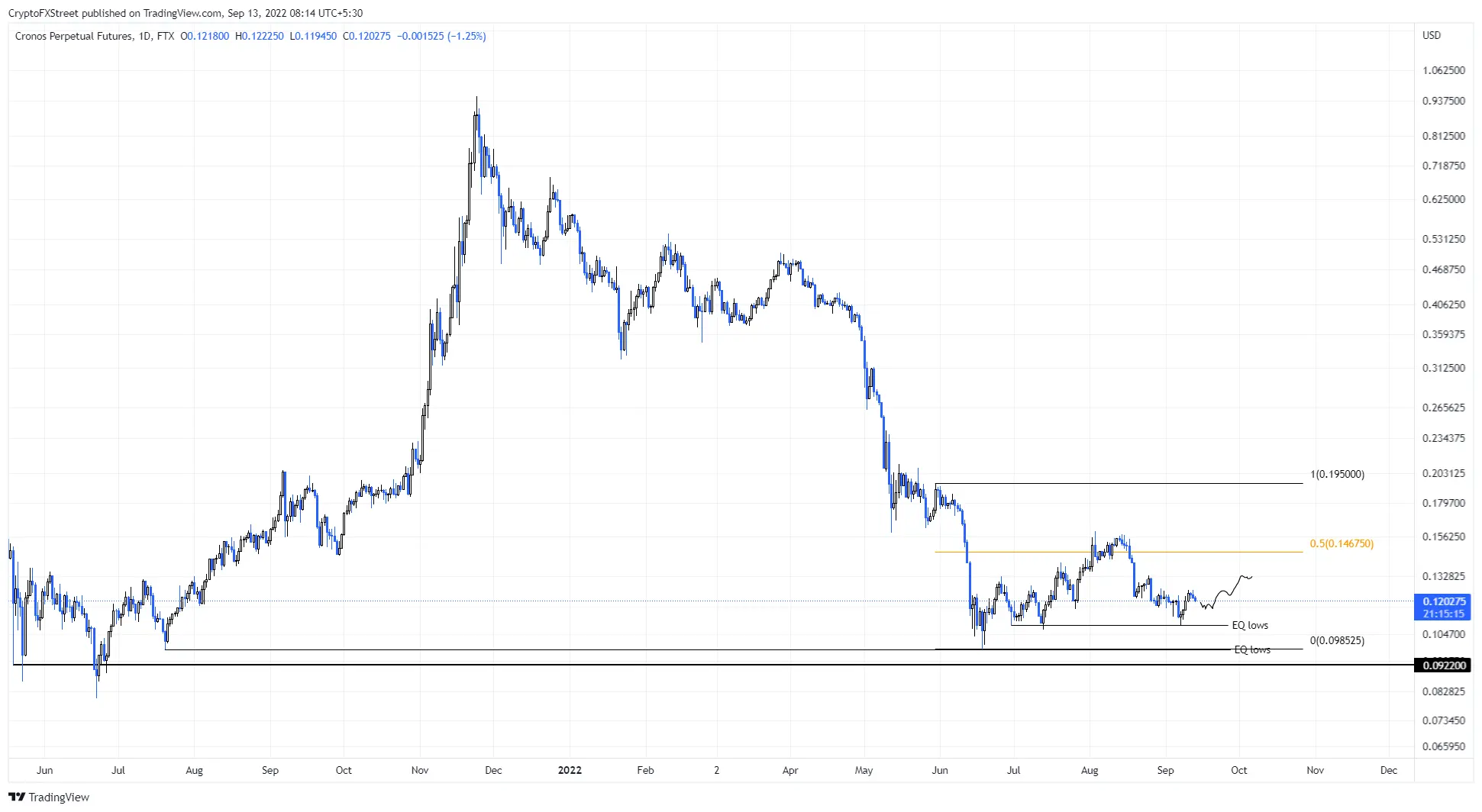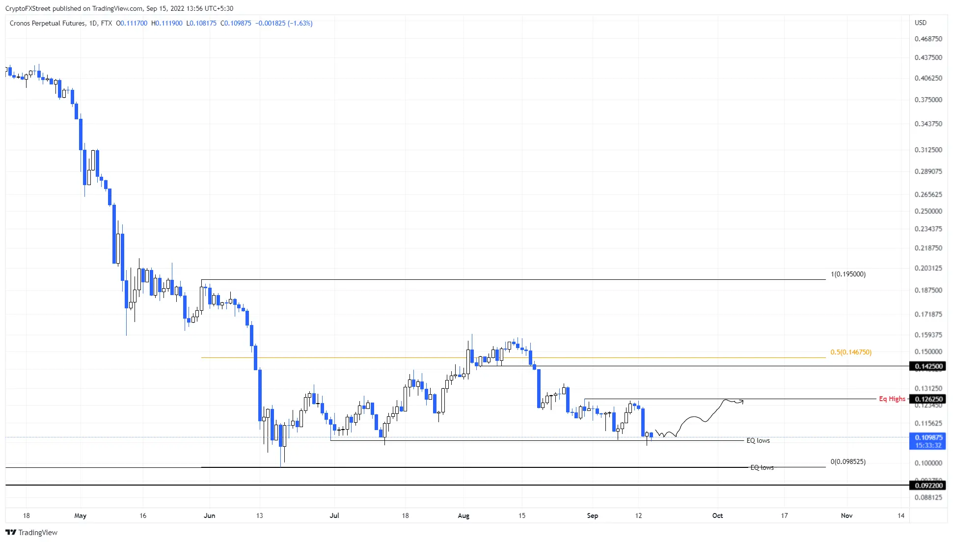 Der Kurs von Crypto.com hat ein höheres Hoch erreicht und versucht, eine 20%ige Rallye auszulösen. Die Aufwärtsbewegung könnte sich nach einem 12%igen Anstieg umkehren, da die Verkaufsstopps unter 0,1080 $ und 0,0985 $ nicht beachtet wurden. Eine Tageskerze, die über 0,1080 $ schließt, wird die bullische These für CRO ungültig machen. Der Preis von Crypto.com befand sich zwischen dem 7. und 10. September in einem Aufwärtstrend, als der Bitcoin-Preis aufgrund des Wiederauflebens der Bullen explodierte. Da sich die Bullen jedoch erschöpfen, verlangsamt sich BTC, und die Altcoins, einschließlich CRO, erleiden ebenfalls einen leichten Rückgang. Crypto.com-Preis bereit für den Test Der Crypto.com-Preis bewegt sich im Bereich von 0,0985 $ bis 0,1950 $, wobei der Mittelpunkt bei 0,1460 $ liegt. Obwohl der CRO bei 0,1080 $ ein gleichmäßiges Tief erreichte und sich um 15 % erholte, betrug der Rückschlag nur 4 %, so dass die Verkaufsstopps nicht beachtet wurden. Nichtsdestotrotz hat die 15-prozentige Bewegung ein höheres Hoch im Vergleich zum Swing-High vom 6. September bei 0,122 $ geschaffen. Diese bullische Marktstrukturverschiebung setzt voraus, dass der Crypto.com-Preis nach dem anhaltenden Pullback weiter steigen sollte. Aus der Sicht der Market Maker könnte der Crypto.com-Kurs das Hoch vom 26. August bei 0,1330 $ anpeilen, das etwa 12 % entfernt ist. In