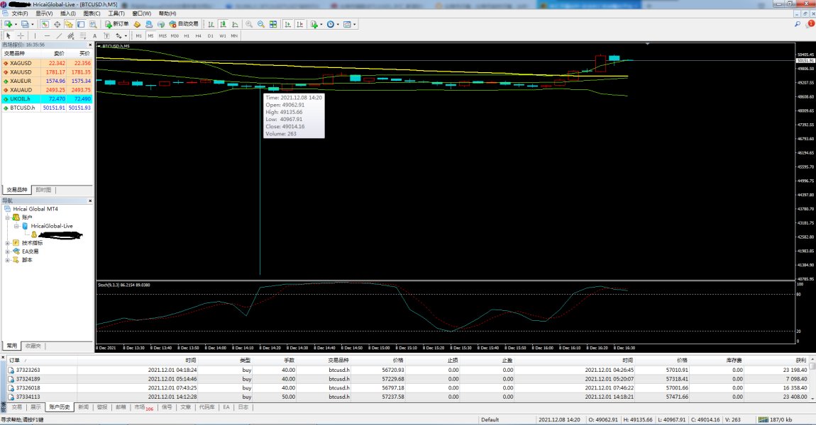 2021年12月8日,盘中最低价在49800左右,作假跌至40967,导致爆仓,平仓价45015