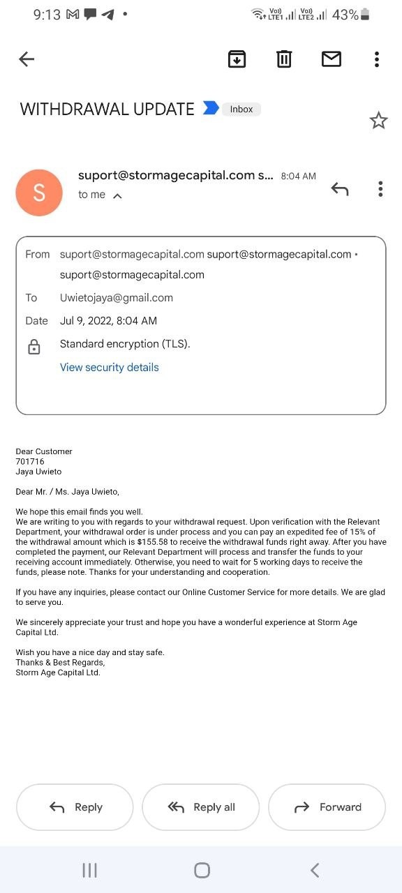 User has not proven to be a STORM AGE CAPITAL trader
