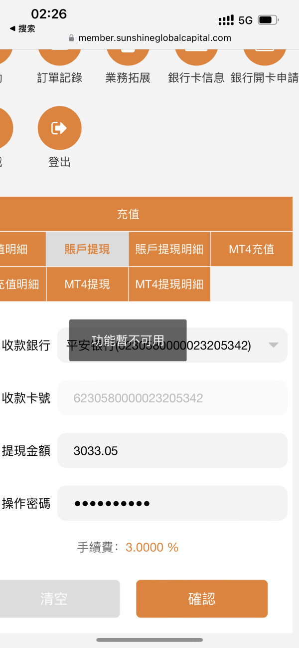 提现时一直提示“功能暂不可用”不给出金!