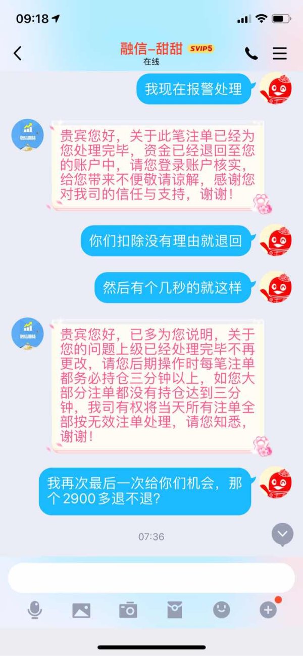 违造持仓3分钟规则,私意扣除客户资金!!客户发现后,截图证明,只退还一部分资金!!而且以赠送名义退还