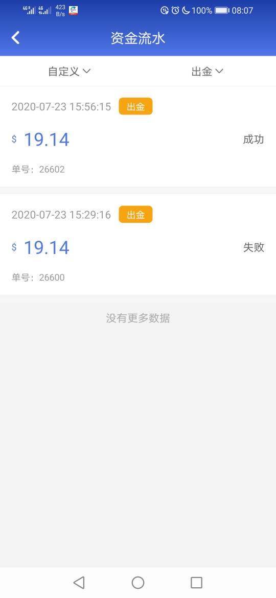 第一次无法出金,要提交两次才行,我感觉好奇怪,20块钱,提交了没人管吗?还找借口,人数不够吗?还有充值送那么多,是说优惠佣金,你直接优惠佣金不是好了!诱惑充值,大家小心点,不要冲几万几千的傻傻的