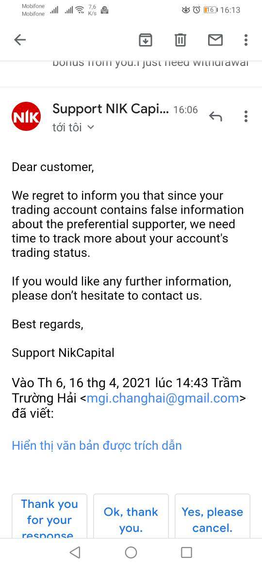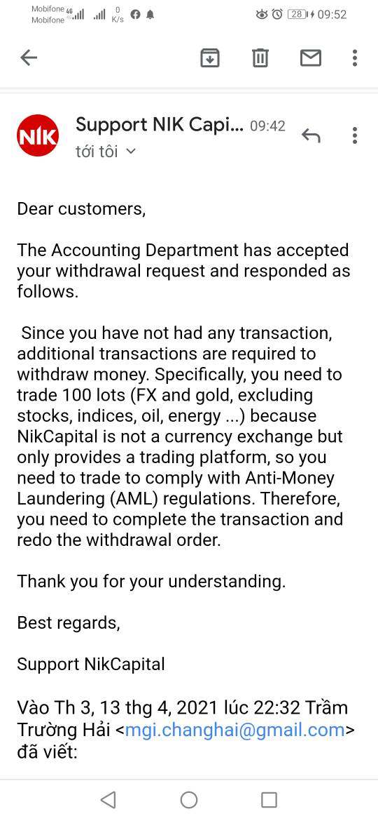 Bắt buộc phải giao dịch đủ 100 lot rồi mới cho rút. Sau đó lại nói sai người hỗ trợ bonus. Sàn này cố tình muốn tài khoản giao dịch thua để chiếm đoạt tiền. [d83d][de01]