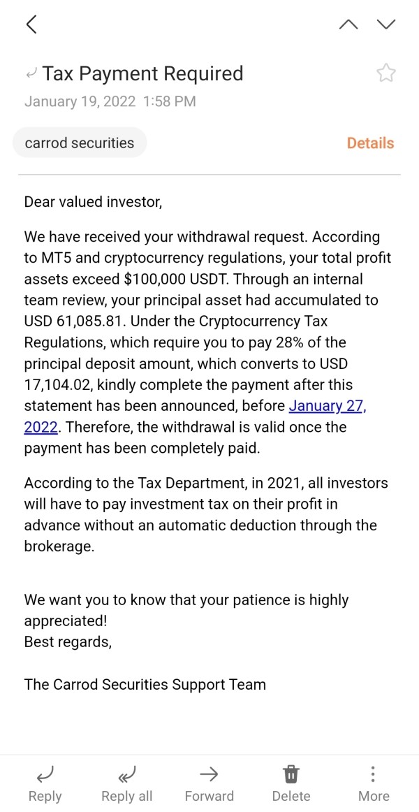 Scam - Carrod Securities Co Ltd