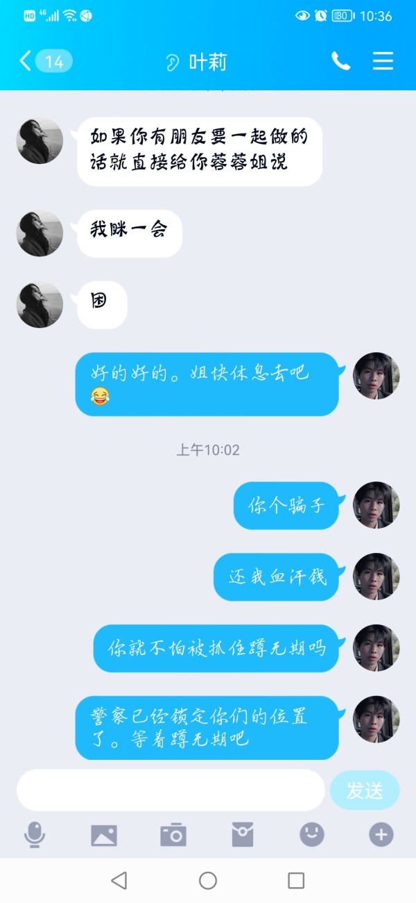 才发现以前的群里一大半是骗子同伙,骗你入金,骗你借钱加仓,骗你解仓,骗你交保证金能提现,说一堆人生大理想,细思极恐和她以前的聊天记录。 希望警察早日端了这个犯罪窝点一个活口也不留统统枪毙!!!