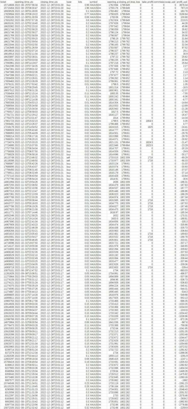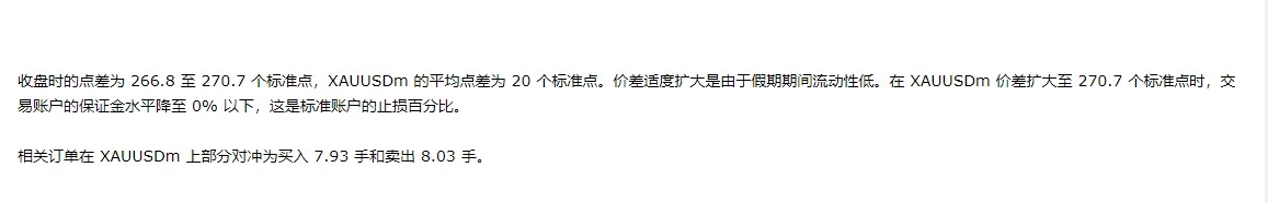 EXNESS 里面有 XAUUSDm 做部分对冲为买入 7.93 手和卖出 8.03 手,仓差0.1手,我向EXNESS客服了解过,锁仓是不占用保证金的,占用保证金只算仓差的部分,按黄金2000倍杠杆0.1手只占用9.1美元。2022年12月26 日,开盘跳空只是1美元左右,也就是10个点,我0.1手也就亏10几美元,但坑人的EXNESS,XAUUSDm 的平均点差为 20 个标准点,把点差拉大到270.7标准点,扩大10几倍,直接把账户拉爆仓,全部平仓,1500多美元。直接变成0美元。太坑了。EXNESS平台真的太黑了,按他们的做法,节假日或发布数据的时候,就是收割的时候。直接扩大点差把别人拉爆仓,直接吃了就好了。EXNESS真的辜负我的信任。绝对真实账户反映EXNESS几次都不处理,EXNESS你们可以再坑一点吗?