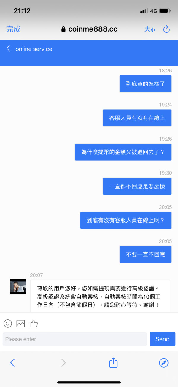 CME入金很快提幣就ㄧ大堆藉口跟理由 還說提幣針對地區性的 台灣人提幣就要高級認證啦