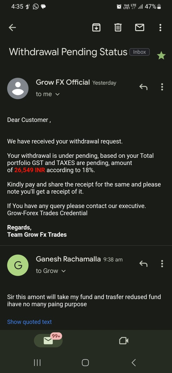Grow FX Trade is a reliable forex broker. I haven't seen a single broker with trading conditions better than here. I'm grateful for the fast execution of orders and the great customer support.
