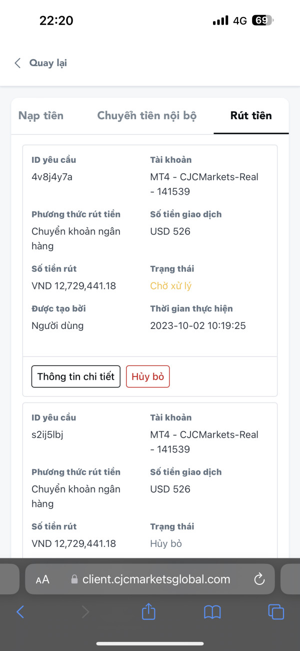 hiện tại đã trải qua 1 tháng mà sàn cjc markets ko hỗ trợ cho rút tiền. để nghị sàn mau chống giải quyết dùm mình