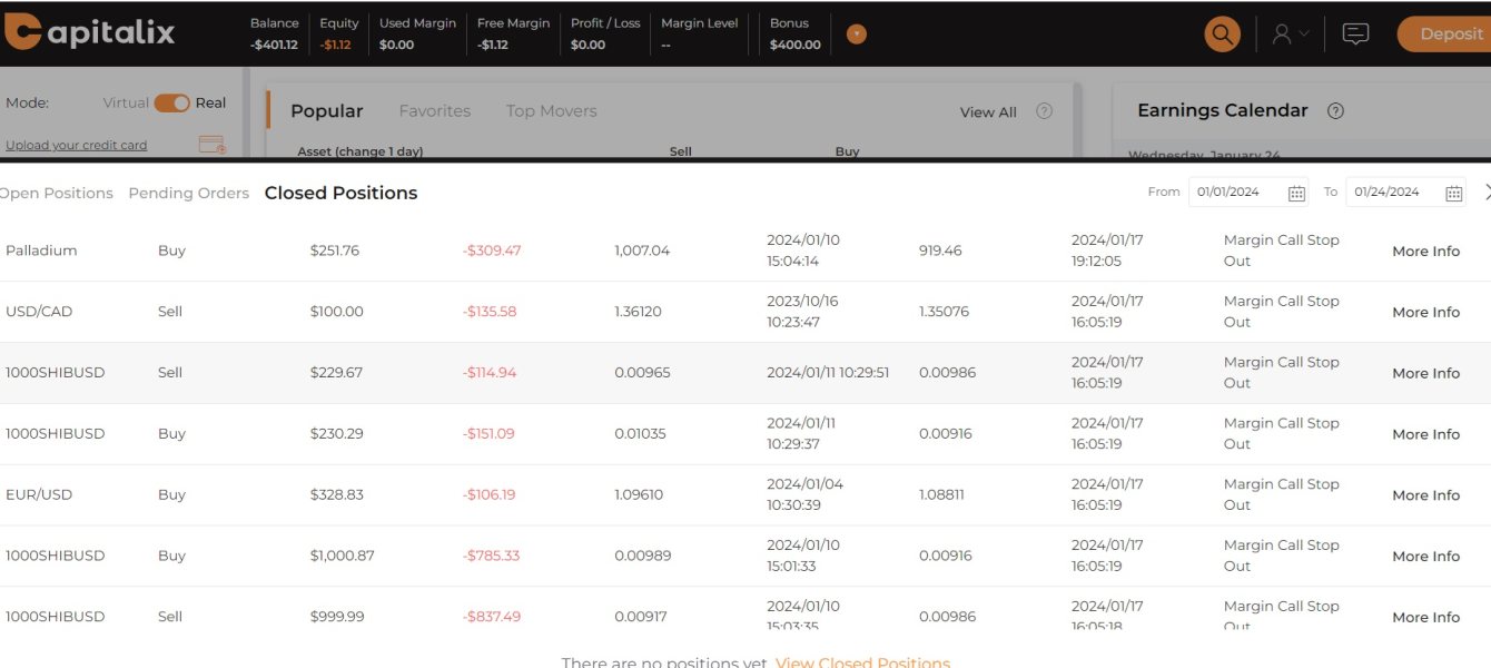 En octubre del 2023 comencé a invertir por primera vez en Capitalix, como yo apenas comenzaba a aprender solo invertir lo minimo que me exigieron para abrir la cuenta que fueron 200$, luego me indicaron que si quería obtener el 20% de ganancia de lo invertido debía invertor 2,500 $, luego me invitaron a webinar y sesiones donde te mandaban a llamar a tu asesor para que te dijera como seguir invirtiendo y la ganacia ofrecida nunca la vi, durante las siguientes semanas mi manager me indicó como siempre en qué debía invertir, solo que al darse cuenta que no invertía más y que lo que hacía era retirar (logré recuperar solo $ 600, este año me hicieron invertir en posiciones desde el principio de estuvieron en negativo y que me dejaron sin saldo disponible libre, al paso de los días me informaron que había ocurrido algo en el mercado y que tuvieron que cerrar la cuenta y que si no depositava $ 600 no se recuperaría la cuenta y mi dinero. Por dupuestso que no inverti más pero ahora al ingresar a la cuenta no tenga nada de ccapitay y las posiciones todas estáb cerradas y se quedaron con mi dinero esos ladrones.
