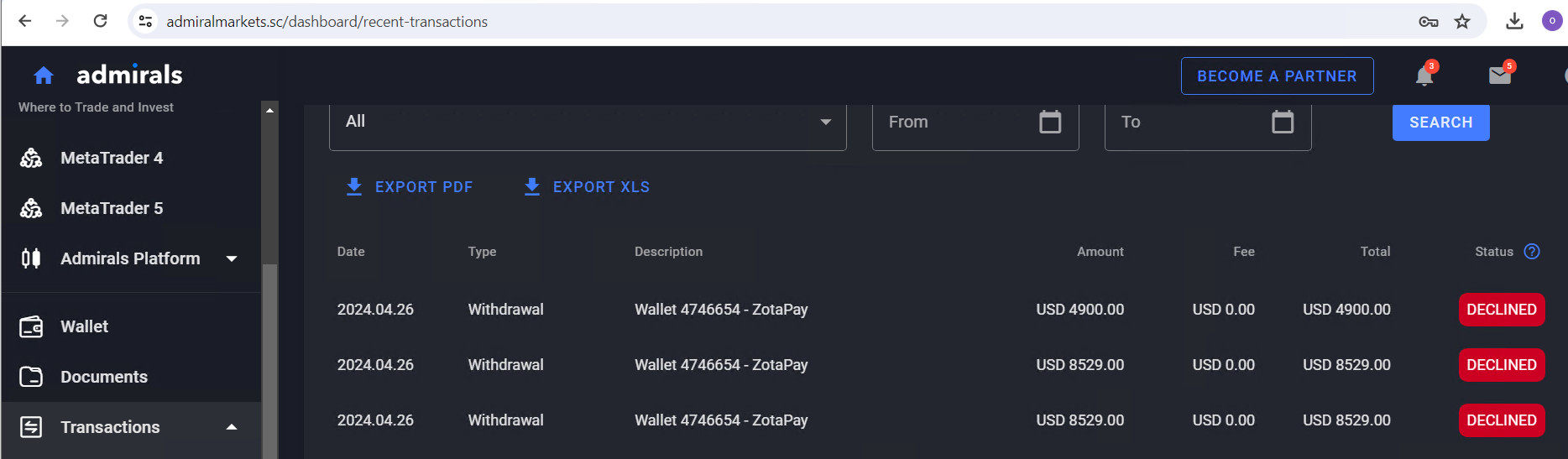 Tôi giao dịch admiral trong 1 tháng, mọi chuyện diễn ra hoàn toàn bình thường và không có bất cứ cảnh báo gì từ sàn, tôi cũng đã phải nạp tiền vào sàn nhiều lần khi lệnh bị lỗ và có thể stopout, nhưng khi có lãi và chốt thì sàn khóa lệnh của tôi và thông báo chỉ cho rút vốn, đây là một hành vi bẩn thiểu và lừa đảo đến từ 1 sàn uy tín 20 năm, tôi đã tìm hiểu và phát hiện nhiều người cũng bị như tôi khi bắt đầu có lãi, hình ảnh bên dưới, bọn chúng đã cướp đi công sức làm việc và tiền bạc hơn 1 tháng trời của tôi, qua rất nhiều email nói dối, bọn chúng không đưa ra được bất cứ bằng chứng nào về việc tôi giao dịch sai luật, mọi người hãy giúp tôi đánh giá xấu về sàn lừa đảo nhà đầu tư từ Việt Nam này, bọn chúng rất sợ người ở nước sở tại và các nước khác, chỉ có khách hàng từ các nước nhỏ thì chúng chơi chiêu trò hết sức bẩn thiểu vì biết tôi sẽ gặp rất nhiều rào cản để đưa bọn chúng ra ánh sáng.