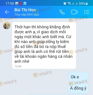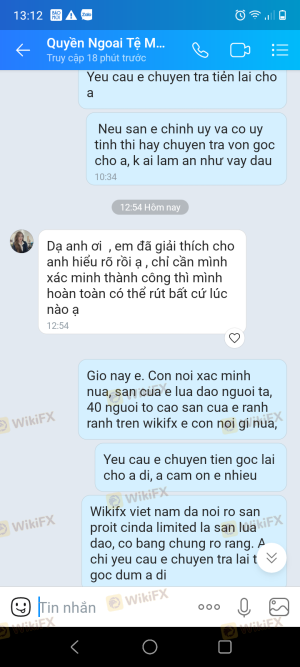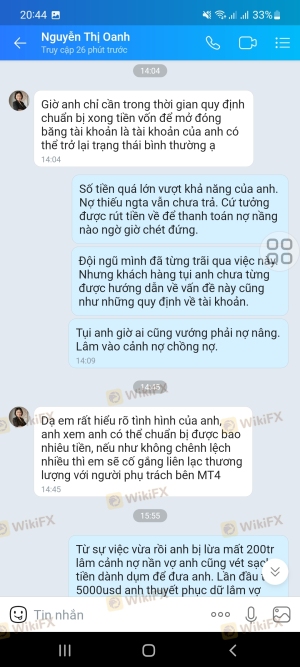 My MT4 account is 2076122. After consistent trading, my account balance is more than $28000. However they don't allow withdrawal because profit is higher than account balance, they ask to deposit 50% of total current account balance to verify the account and then withdraw, and this is a sign of fraud, request the authorities to help me and other players withdraw our original amount invested, (below are some pictures of the company's top-up and commitment, the phone number of the consultant who calls regularly, Hien's name).