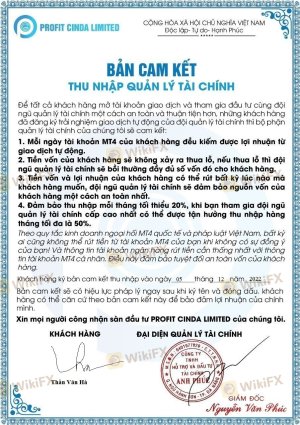 PROFIT CINDA LIMITED does not allow withdrawals