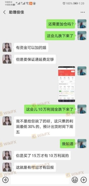 With the attitude of learning, I have observed for a while in the group. The assistant Jia Jia posted teacher’s recommendation on stock trading—position building and selling. Teacher Wang Xiang and master manager Liu and Ji taught lesson every night. On the next morning, they took members to build position. Seeing they making money, I moved. Jia Jia noticed that the second stage needs us to become VIP and use margin accounts. Thus, I opened an account and bound it to my bank card. On her guidance, I profited 20 thousand yuan and extra 4000 thorough several recommended shares. The platform stipulated that 18 yuan rollover will be charged per 10 thousand yuan. Finding that the profit these days remained stable, I doubted that whether teachers manipulated on the stock. At this time, Jia Jia told us that we get an extra opportunity to but the new share.On 18th, I deposited 20 thousand into the margin account, bringing the total to 180 thousand. The price went to a limit down. But Jia told that the position wouldn’t be closed and asked me to add fund. Then my position became liquidated, with all fund gone. My balance became -27275 yuan. Jia explained that someone leaked the information of the stock. To recover the loss, they promised add the quote of the share, asking us to continue adding fund. At that time, I realized that it was a bottomless pit. The only goal is to rip us off.This is my experience. During the process, I was pulled into 3 group, namely, C.04 Dingyao Gathering, Core Dingyao Gathering and Dingyao Gathering—Internal Operation. I deposited 180 thousand in total(deposited 200 thousand and withdrew 20 thousand) and bought the recommended share. As of May 18th, my account has become negative. Notice: The platform will block you after your account becomes liquidated. With the excuse of recovering losses, it will continue to ask you to add fund. Hope CWSI solve it if it blames on the agent. If it blames on the platform, I caution you against it.