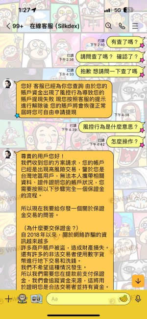 We met on the dating app SweetRing. I wanted to say that it’s rare to meet someone I can chat with. He said he wanted to teach me how to invest in cryptocurrencies and use cryptocurrencies to make money to speed up the repayment of my original debts. He said that the bigger the capital, the greater the profits. He wanted me to I borrowed money from friends, family, and banks everywhere, and borrowed a total of 2.4 million. But now they have left, and the trading app will not allow withdraw any money! First, he asked me to download the Silkdex trading app, then deposit money into the app through line customer service, and then place orders through margin trading to earn the exchange difference. From March to June, the operation was carried out multiple times in three months, and it could be normal in the middle. Small amount can withdraw. When we discovered on 6/23 that the original trading software Silkdex shutdown, we were shocked and realized something was wrong. Then line customer service asked us to download a new trading app "QSNB". After downloading, line customer service helped us restore the funds in the original account. After that, we directly applied for withdrawal, but it was frozen. The customer service responded that there was a risk control behavior and our account was frozen and we were asked to pay another 4,000 USD to cancel it, but we didn't do it, so the money was stuck there!