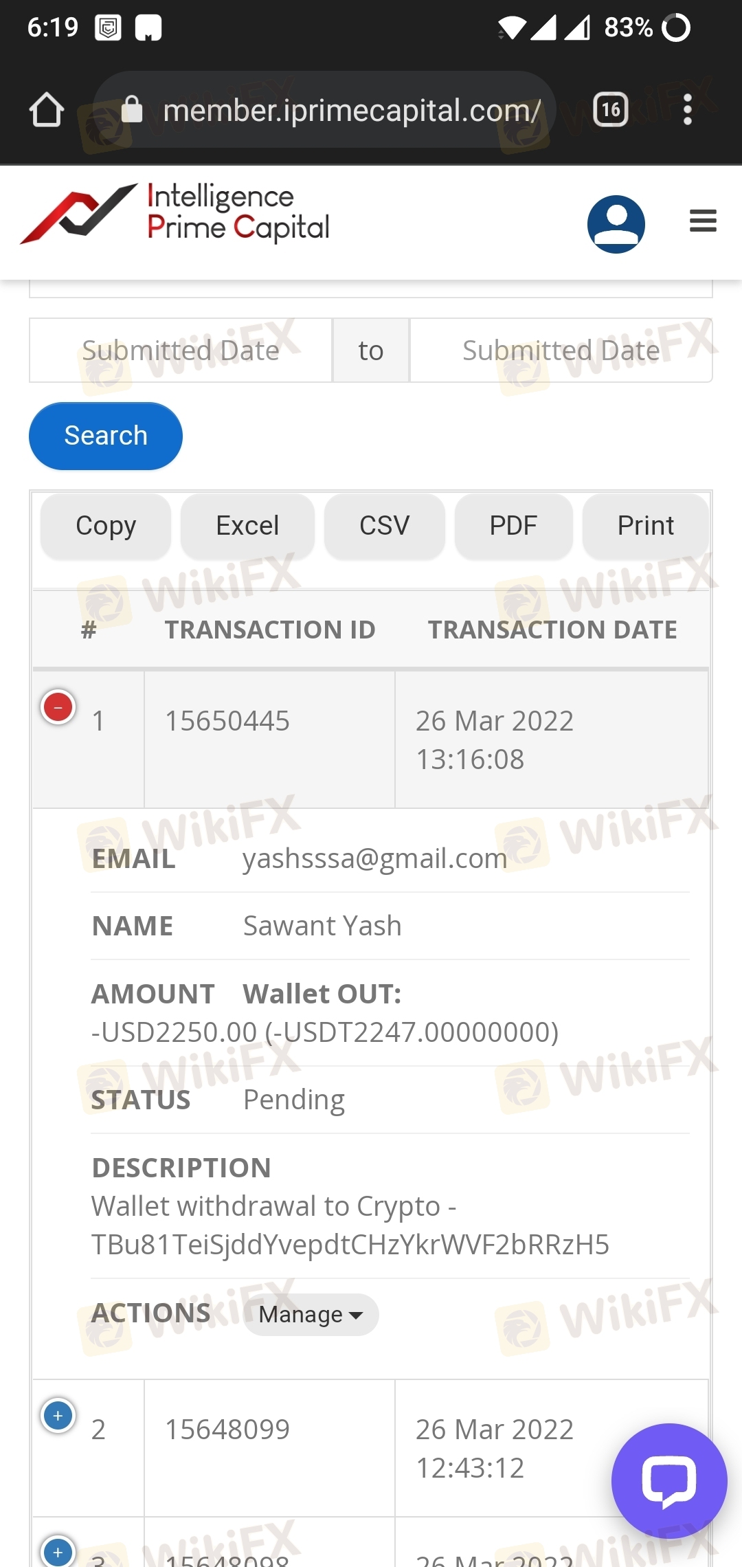 I have placed an request of withdrawal on 26th still haven't received any money from the company and now the website is also down