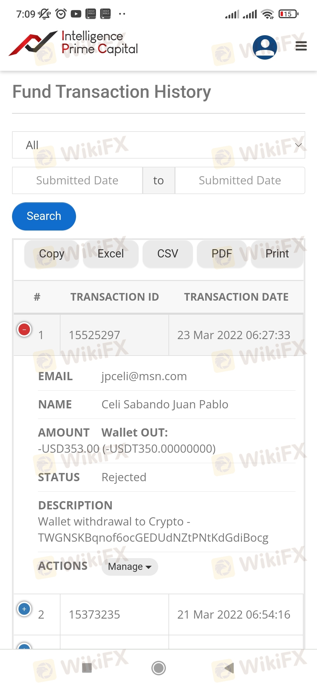 Please send your problem by email at support@iprimecapital.com