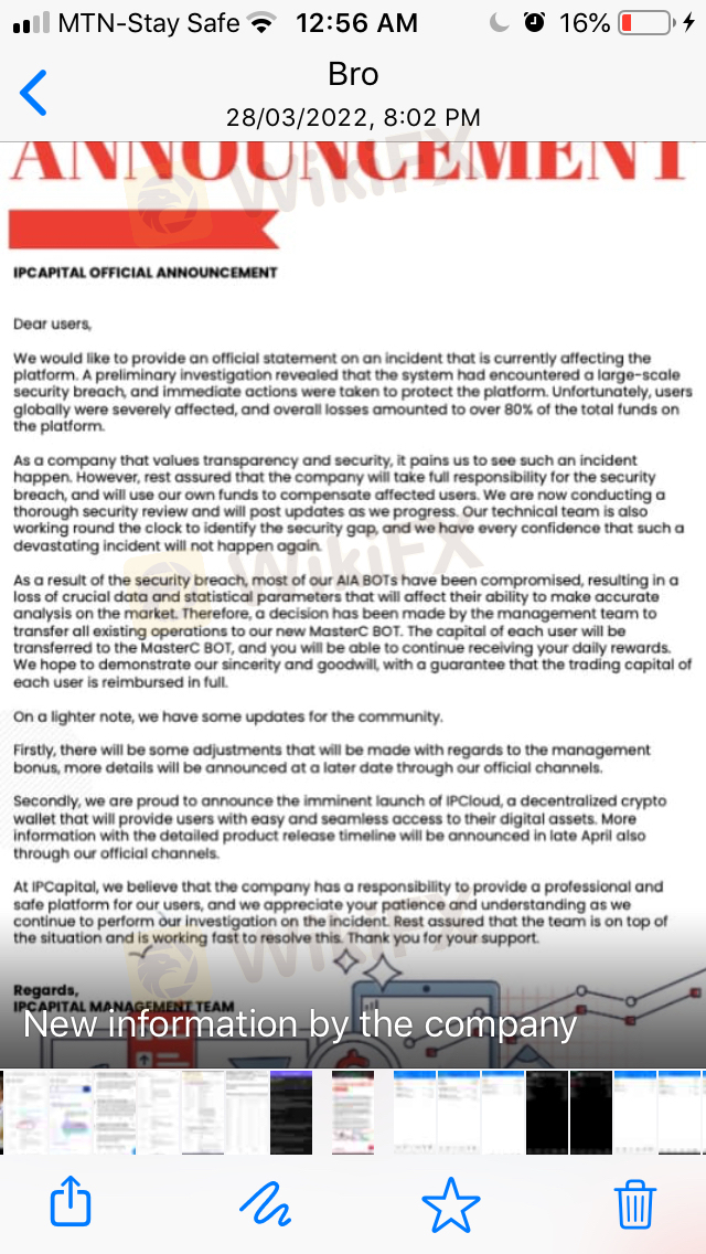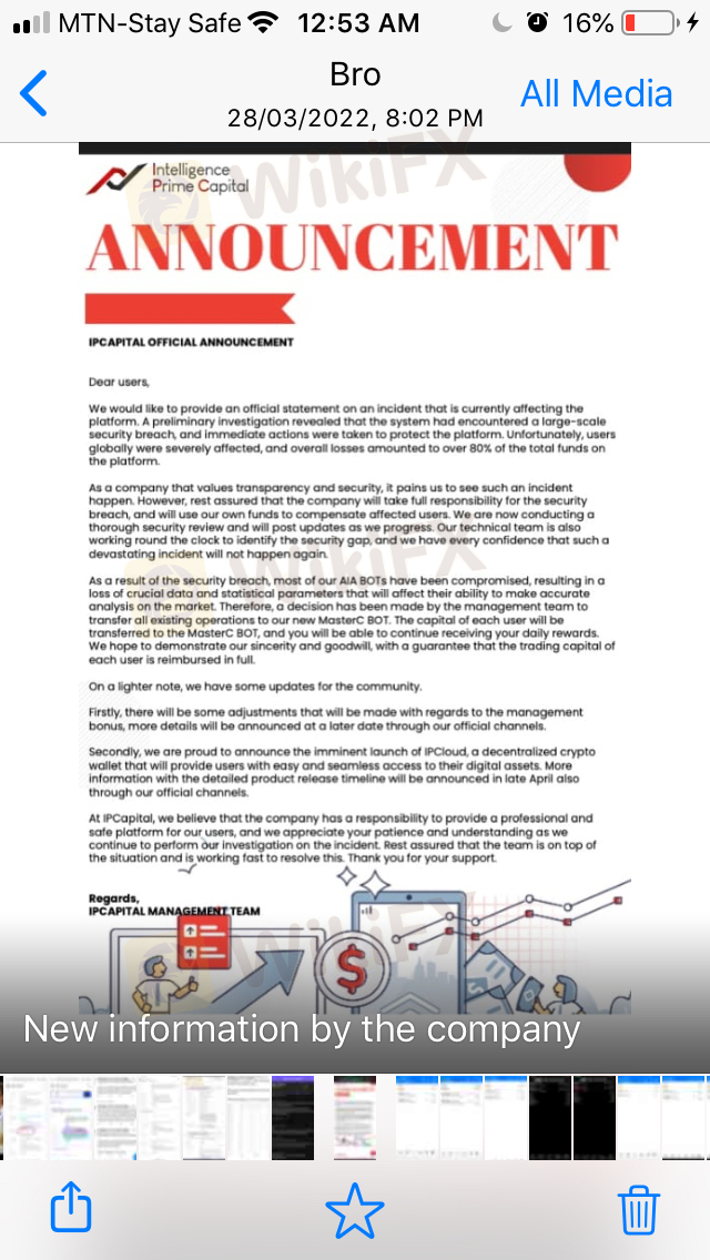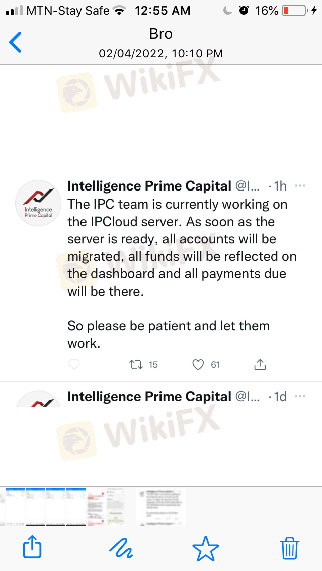 No one subscribed to iprime capital broker has been able to withdraw their weekly trade profits or Mt4 trading capital for 3weeks now. it first started with the company sackings it’s marketing team. then they told us that the has a security breach and they promised to work on it .. but till now we haven’t been able to withdraw.. they also made us all use a particular bot (master c bot) with keeps our capital locked for 90days. so now no one can withdraw his or her capital .. even if the bot still trades daily we are not able to withdraw it cos it doesn’t even drop in or usdt wallet it just disappears from our trading capital for 3weeks now we don’t knw what’s happening, ipc only keeps saying they are working in ipcloud and still nothing is happening . no word from the. since the last update on ipcloud. why can’t we withdraw. is this whole thing a scam?