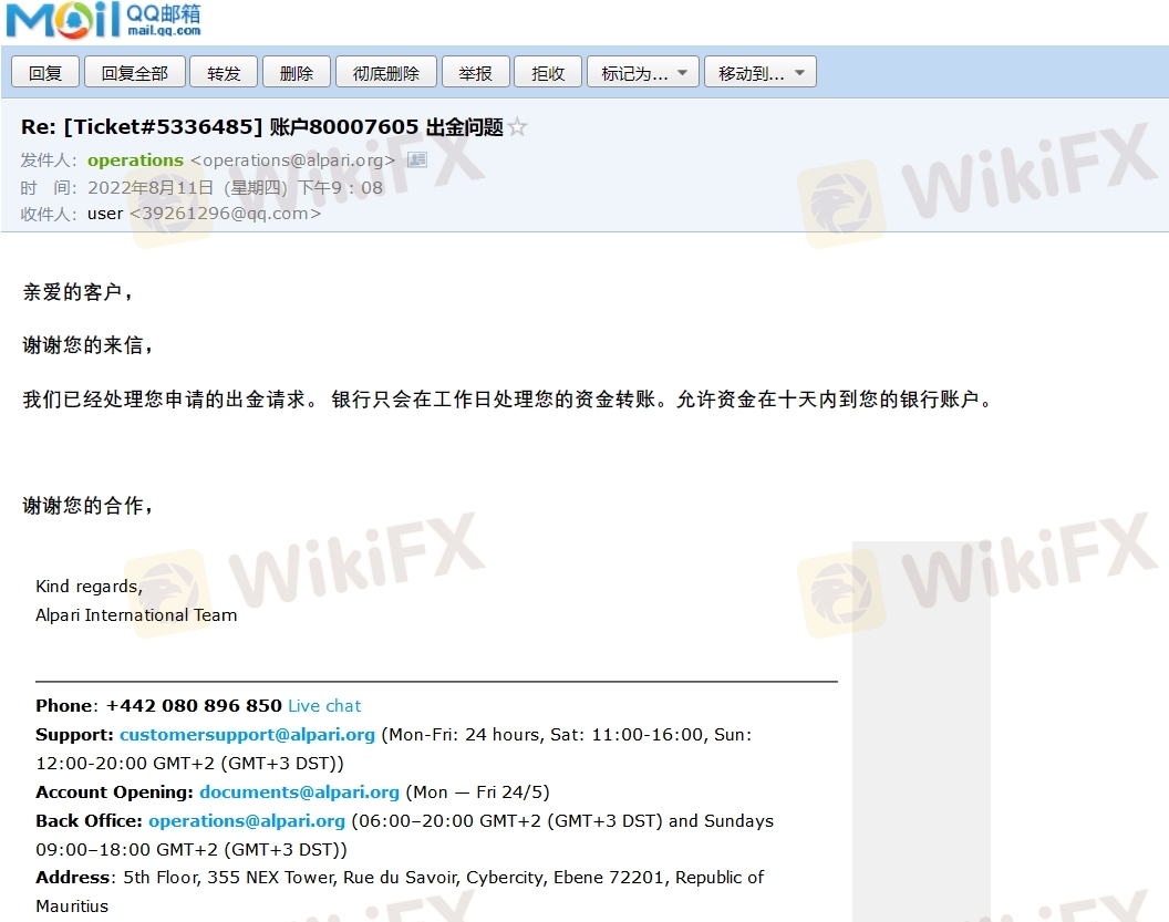 I applied for a withdrawal from August 3, but it has not been received (domestic bank card), I contacted the online customer service and said that it would take 2-5 working days, and sent an email and said that it would be within 10 working days.
