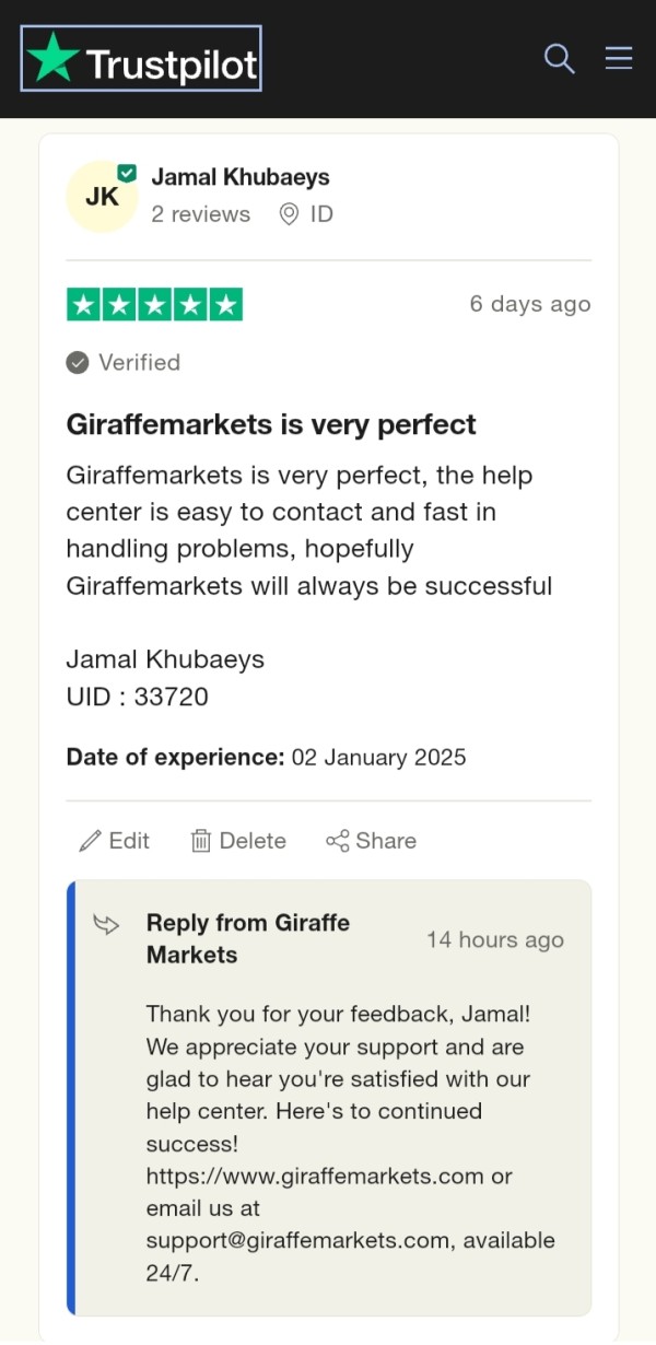 El usuario no ha demostrado ser un comerciante Giraffe Markets